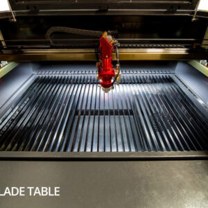 Whether laser processing wood, acrylic, or stainless steel the Saw Tooth and Knife Blade platform will accommodate your material of choice. NOTE: An aluminum honeycomb platfomr for laser cutting small items may be purchased separately.