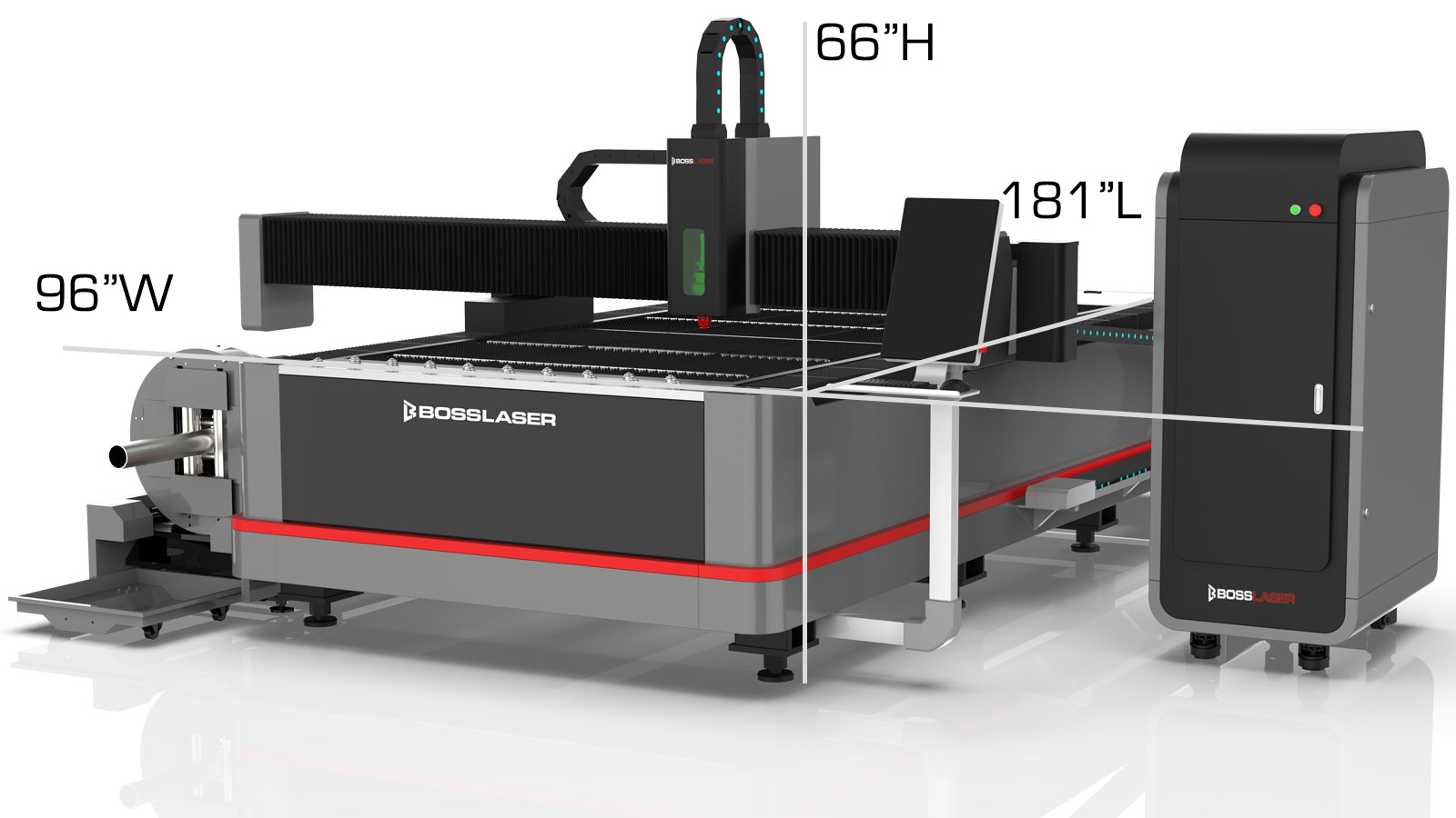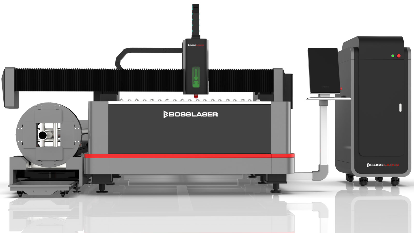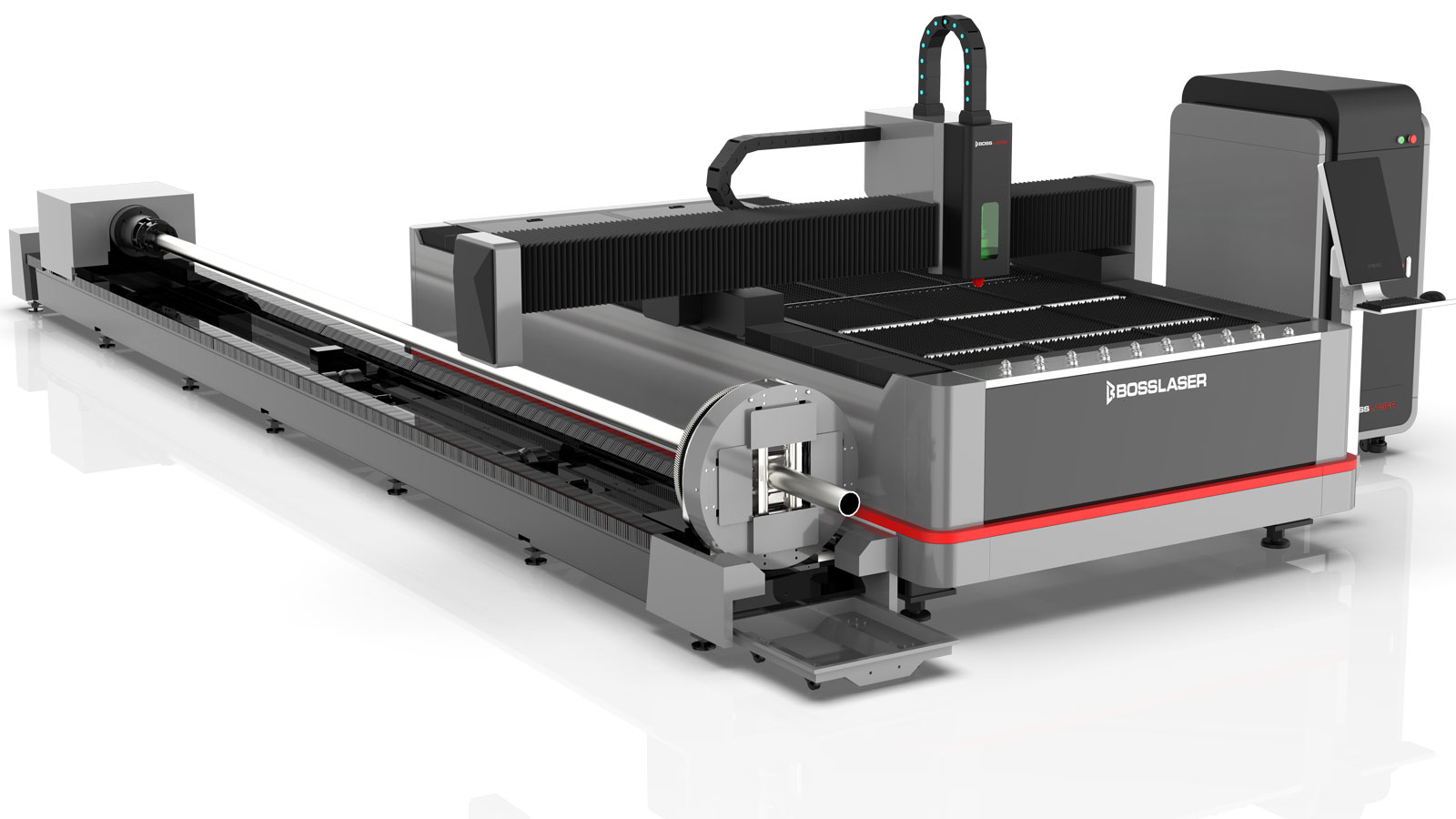 BOSS’ FC Elite PipeCUT fiber laser cutter is a dual purpose fiber laser cutter for effectively cutting both sheet metal and metal pipe. For a fully enclosed design see the FC-EXTPipeCut. Choose up to 2KW of fiber power and laser cut stainless, carbon steel, brass, copper, titanium and other non-ferrous metal sheets or pipes.